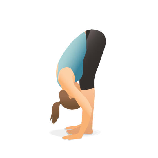 Hinge at your hips and let your torso hang toward the floor, aiming to touch your toes.