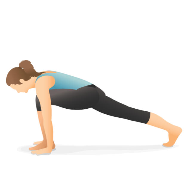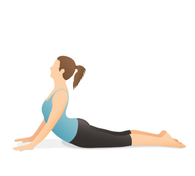Lie on your stomach, place your hands under your shoulders, and press upward, lifting your chest.