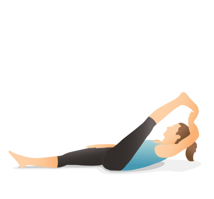 Lie on your back and extend one leg toward the ceiling, holding it with your hands or a strap.